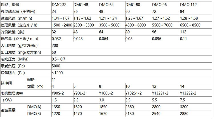 性能、型号 DMC-32 DMC-48 DMC-64 DMC-80 DMC-96 DMC-112